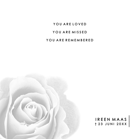 Klassieke rouwkaart roos zwart-wit